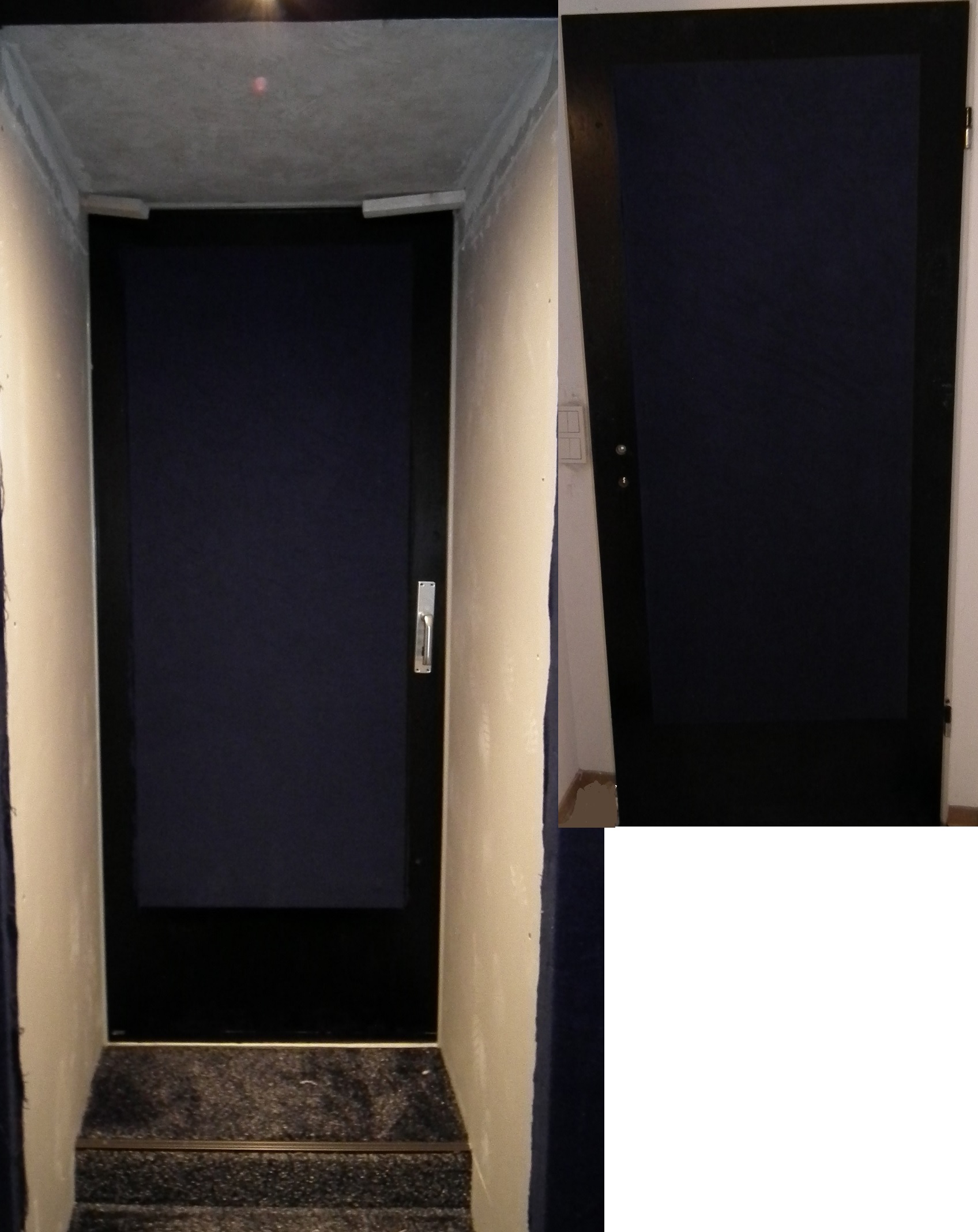 Hab für das Fenster auch was Gebastelt (100mm Absorber auf Hartfaserplatte geklebt und mit Molton bespannt). Jetzt gibt kein Glas mehr was Stört und licht ^^. Die Konstruktion ist raus nehmen bar zum Lüften und Tages licht rein zu lassen.