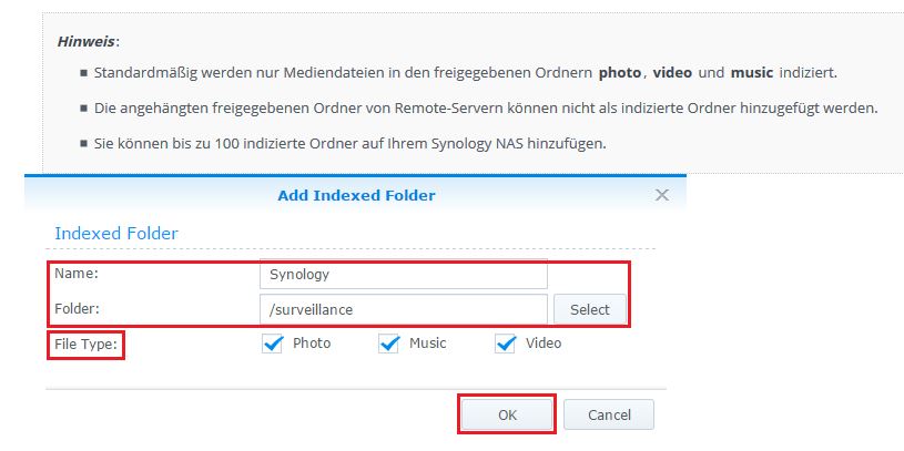 Ich hab das Synologie aktuell nicht in Betrieb, aber ich meine auch nachdem die Freigabe erfolgt ist und der neue Ordner "sichtbar" ist, kann man die Indizierung durch den Mediaserver irgendwo einstellen.joe.i.m hat geschrieben:Kann man denn in dem Fall nicht die Verzeichnisse zum indizieren durch den Mediaserver erweitern bzw einen weiteren Ordner einbinden? Wenn die Platte unter gemeinsamen Ordnern sichtbar ist sollte es doch grundsätzlich möglich sein. Ich habe irgendwo im Hinterkopf, das bis zu hundert indizierte Ordner geben kann,