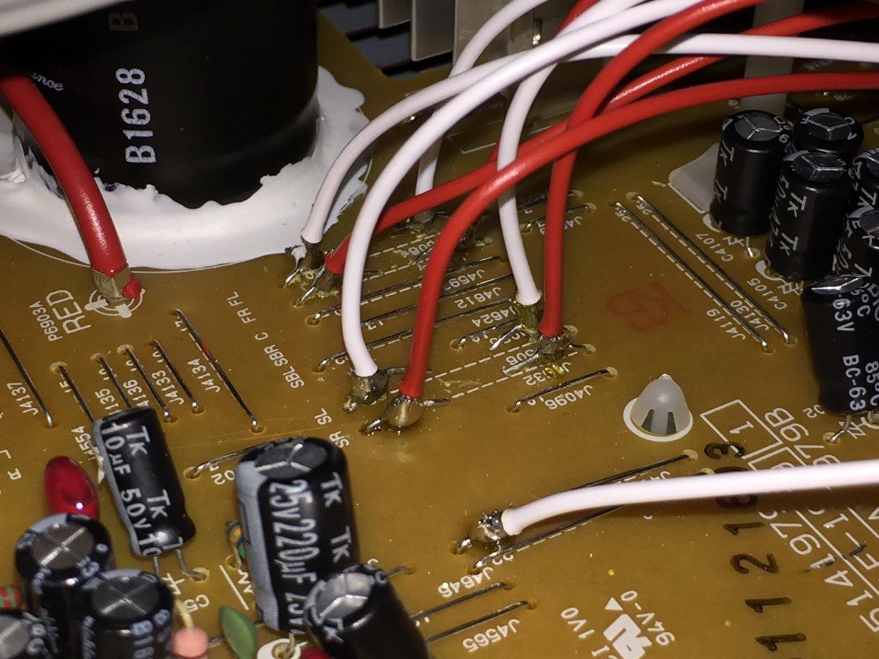 ...die nun "ganz einfach" durch Auftrennung der Signalbrücken zwischen Vor- & Endstufe mittels Seitenschneider erfolgt 8) ...in diesem Fall SR/SL/FR/FL