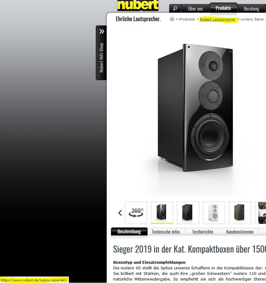 Egal bei welchem Lautsprecherprodukt man ist, der Navtrail-Link mit dem Namen "Nubert Lautsprecher" führt immer auf die nuBox Seite: https://www.nubert.de/nubox-serie/445/