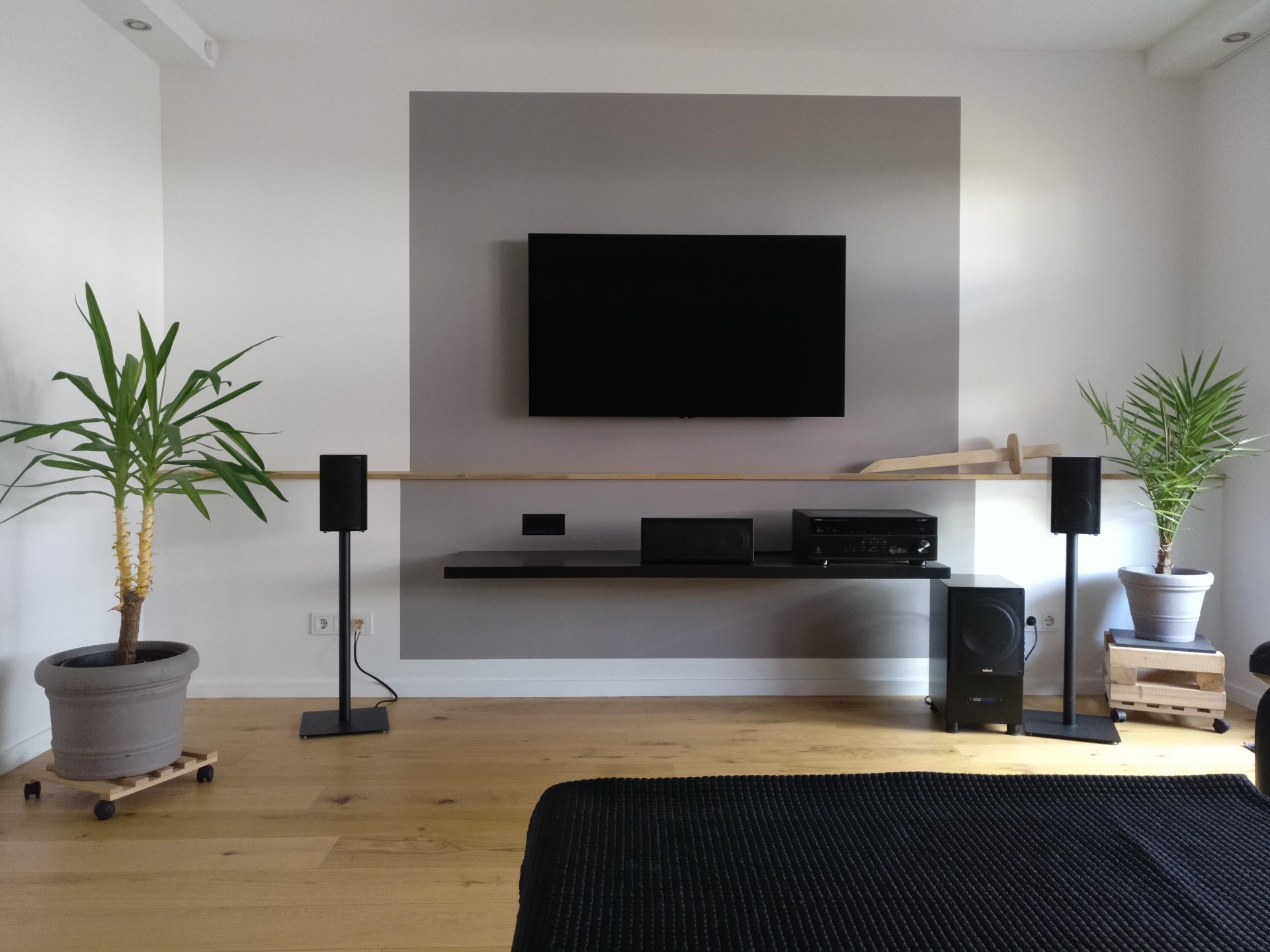 Als erstes der Center. Die WS-14 hing früher in der alten Wohnung aus Platzgründen genau unter dem TV, einen anderen LS konnte ich nicht nutzen wegen der Tiefe.