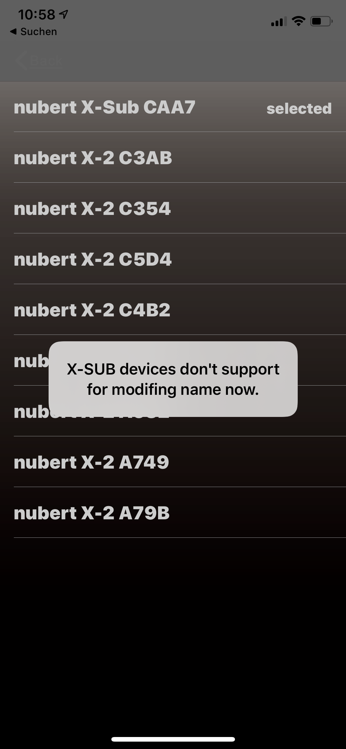 die nuSub Geräte unterstützen keine Umbenennung. In der Android-App ist leider der Hinweis noch nicht integriert, den es in der iOS Version schon gibt.