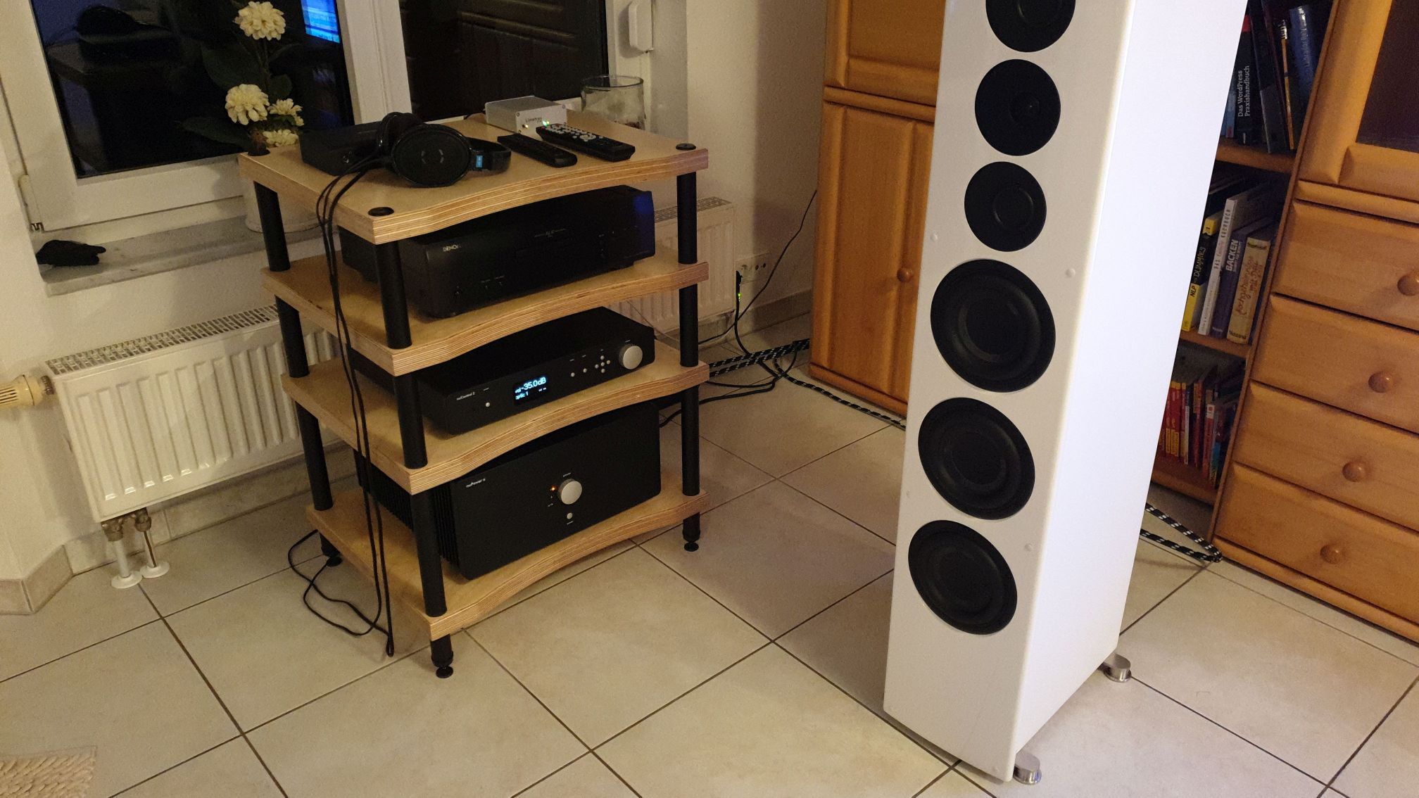wenn man schon das Nubertsche Blechschwein kaufen will, dann doch auch bitte kein Sperrholzrack. Man kann erhebliche Mengen an Geld in dieses Thema versenken, ich bin da kein Freund von Klangunterschieden bei der Verwendung verschiedener Racks, aber stabil genug sollte es schon sein.