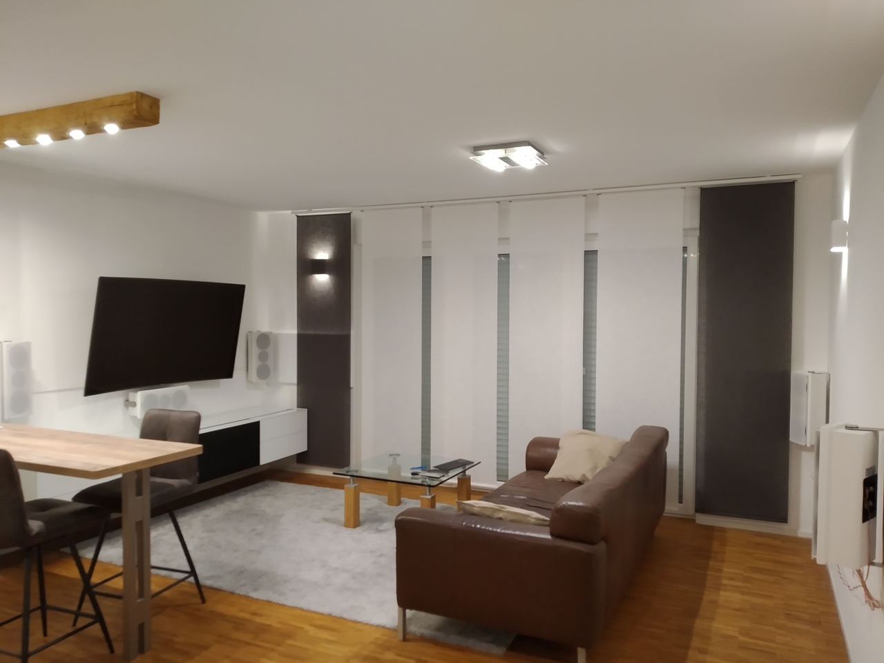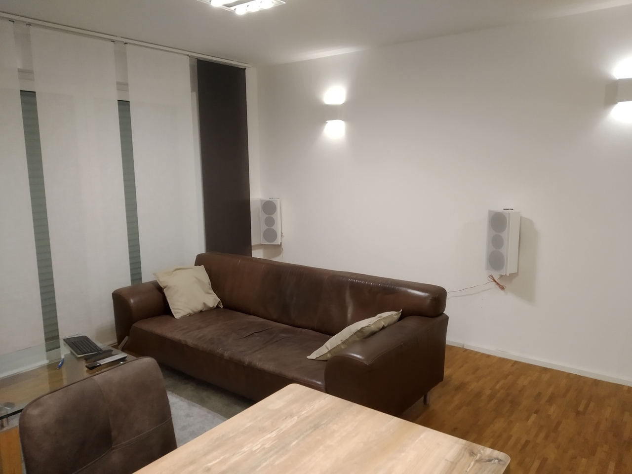 Also was mir zur Raumakustik in den sinn kommt währe ein Deckenabsorber / Deckensegel, oder/und etwas an der Rückwand hinter der Couch.