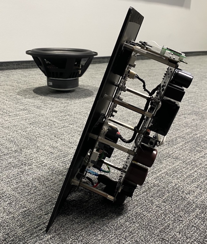 der Elektronikträger darf imho nicht "unten" zu liegen kommen (obwohl's natürlich schöner wäre), da sind innen wärmeemittierende Bauteile thermisch kontaktiert, seitlich könnte/sollte aber ok sein, allerdings ohne Gewährleistung ...Strumpfbrand hat geschrieben: Do 10. Dez 2020, 16:52 Was spricht dagegen, im Falle eines DBAs (Hallo AndyRTR), den Sub auf die Seite zu legen mit Chassis Richtung Rückwand?