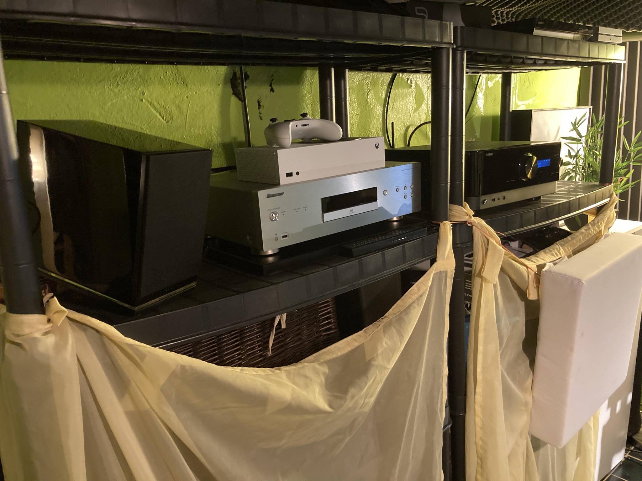 Nachdem letzten, gottlob leichtem Hochwasser, musste ich reagieren, die Subwoofer standen quasi schon mit den Füßen im Wasser. Die Geräte die unten stehen, kommen auch noch hoch.