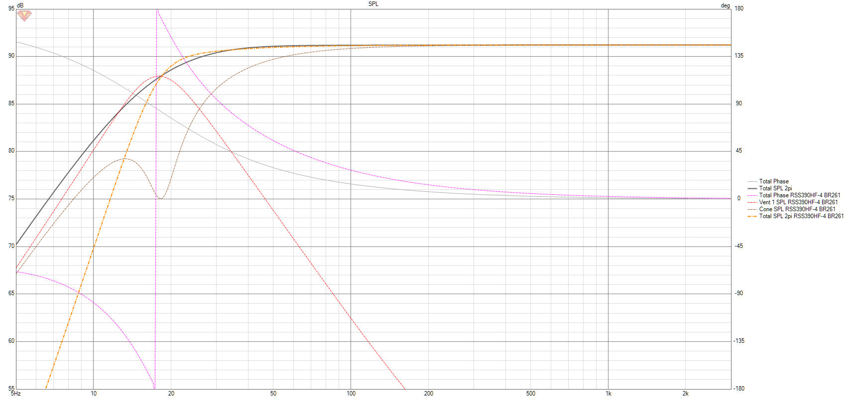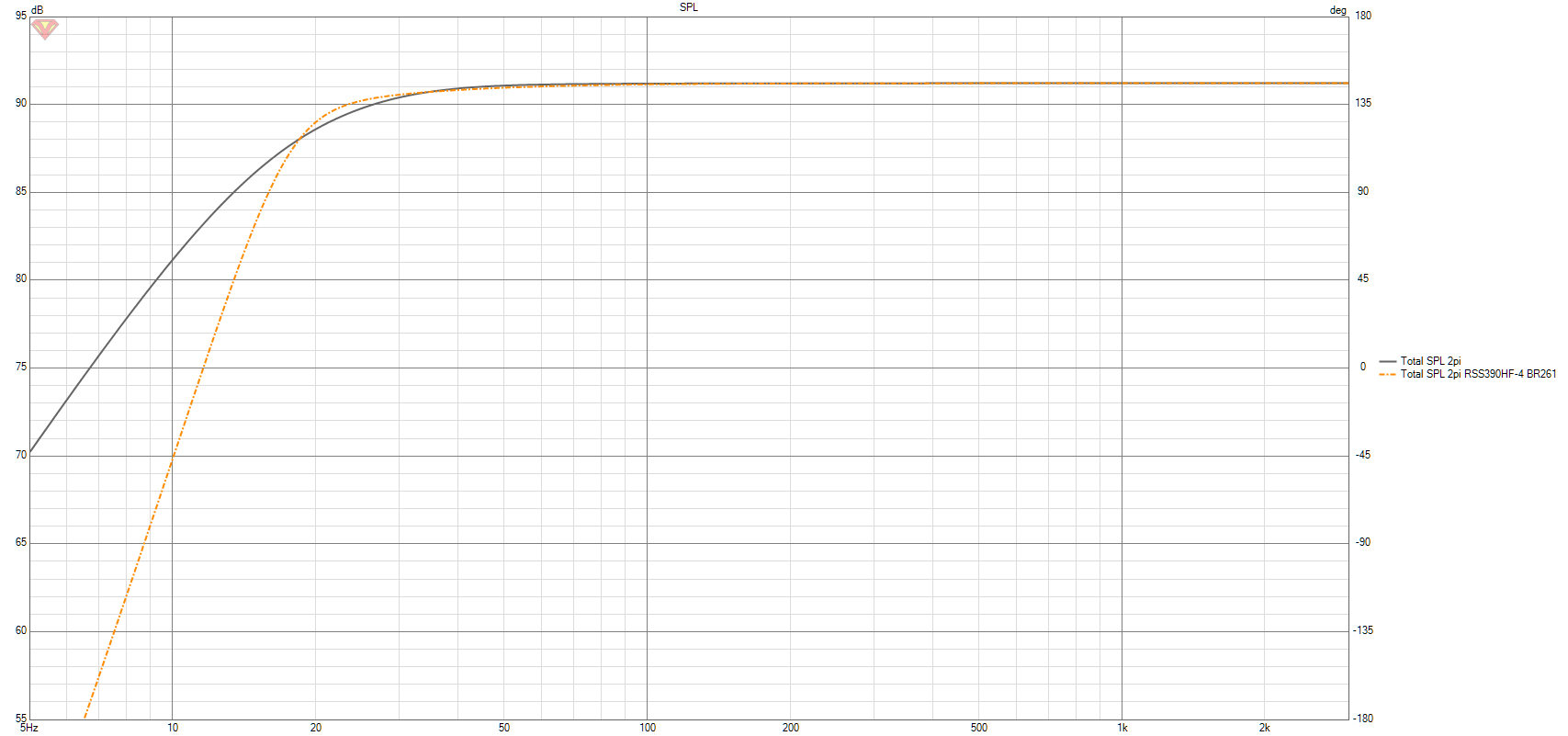 In der zweiten Darstellung sind nur die resultierenden Frequenzgänge (FR) dargestellt (falls die obige Darstellung zu verwirrend ist). Bei identischem f3 hat der CB-Sub besseres Tieftonverhalten, wegen des flacher abfallenden FR.