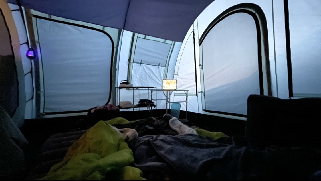 Allerdings handelt es sich um ganz normale Kindertretroller, keine Elektroroller. Und ich habe überlegt, sie rauszumontieren oder zu beschneiden, aber dann hätte von den Zelten was gefehlt.