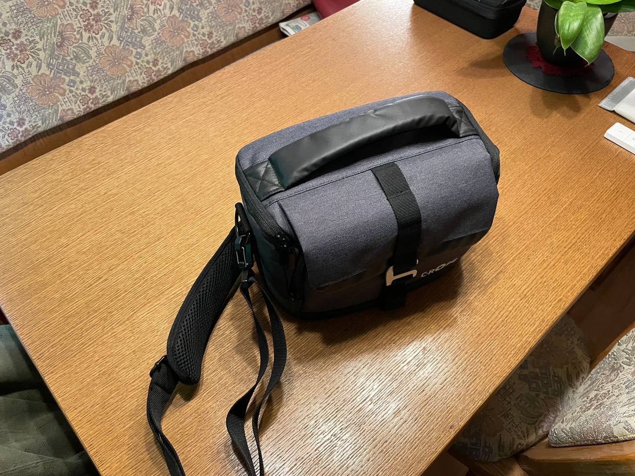 Ist eine ausreichend gepolsterte Kameratasche, die noch Kletttrenner dabei hat, die ich an die lange Rückseite geklettet habe, um die abstehende Antenne etwas besser zu Puffern. Die Antenne ist damit unter dem Polster. Von den Maßen her gut und hat vorne noch eine Tasche für Kleinkram, wenn man die nuGo One mit auf Tour nimmt.
