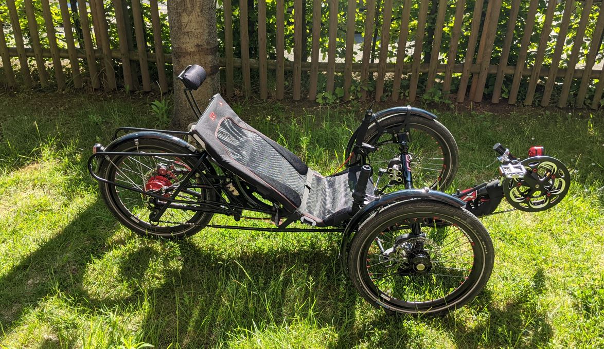 Meine Frau fährt eine Liegerad Trike nicht gerne, ihr ist es zu tief und sie hat für sich einen zu schlechten Überblick. Zudem tritt sie nicht gern nach vorne.