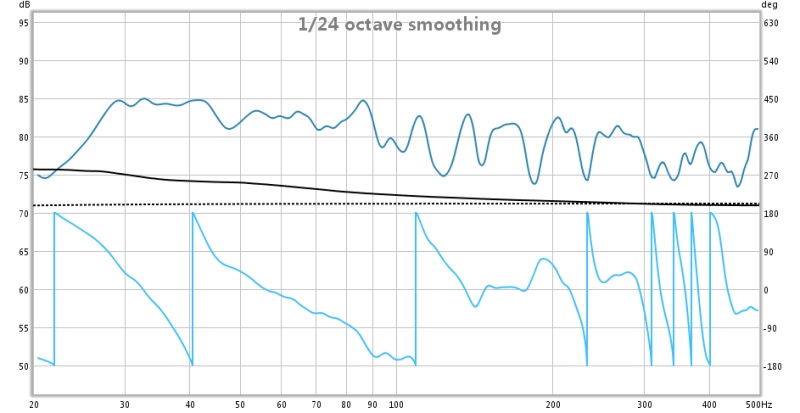 habe den Frequenzgang am Hörplatz gemessen, Vorhänge habe ich schon zu, habe einen Fliesenboden aber noch ohne Teppich.