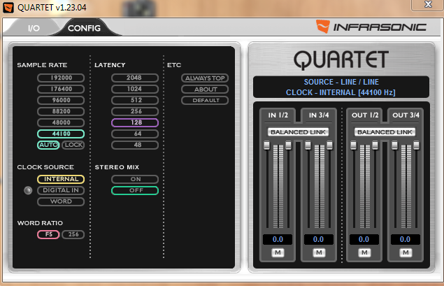 Zum Schluss noch ein Screenshot vom Quartet-Sound-Tool - hier habe ich nichts geändert - sieht nach meinem Laienverstand auch ok aus.