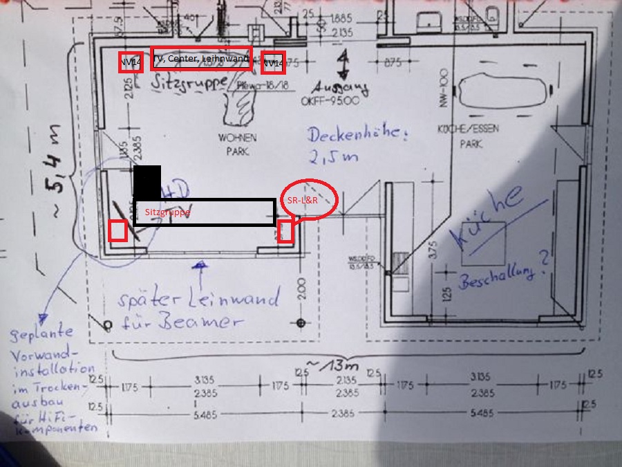Das große Fenster im Rücken halte ich für keine gute Lösung, weder akustisch (Reflexionen) noch optisch (verbauter Blick, helles Fenster im Rücken, Reflexionen auf dem TV).
