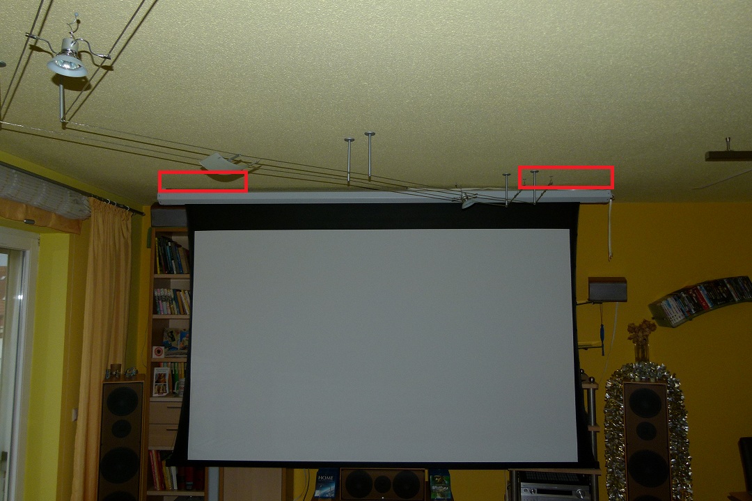 Bei mir wäre es, generell, wohl eher die Decke (sonst werden sie von der Leinwand verdeckt < die ist noch nicht im Bild) und da gehen ja die Halter dafür nicht, weil der Schwenkwinkel dann nicht ausreichen würde... :|