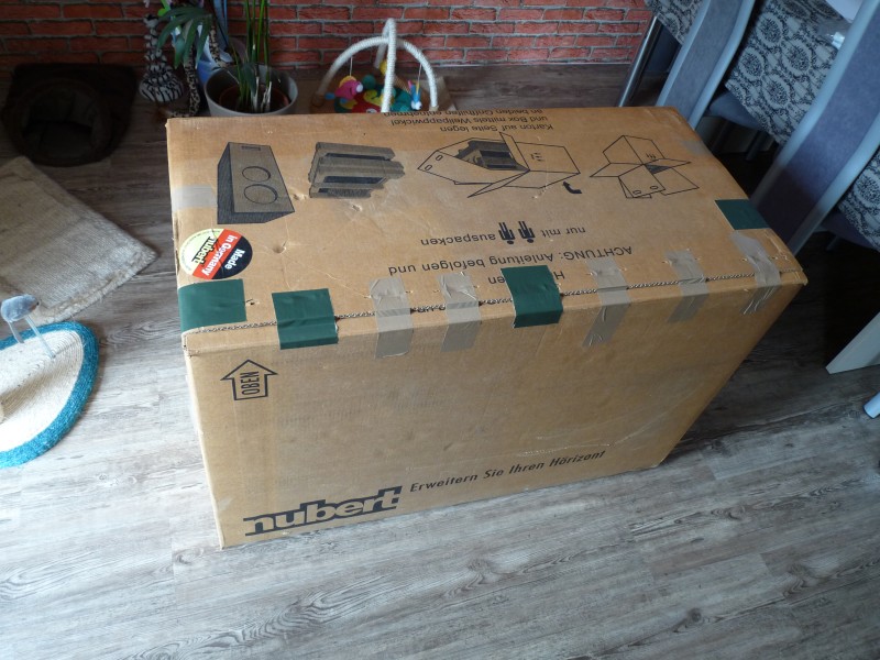der starke UPS-Mann und ich trugen die zarten 60Kg in sein Auto. Da nur drei Stufen zu bewältigen waren, kam mir das Paket garnicht so schwer vor. :sweat:
