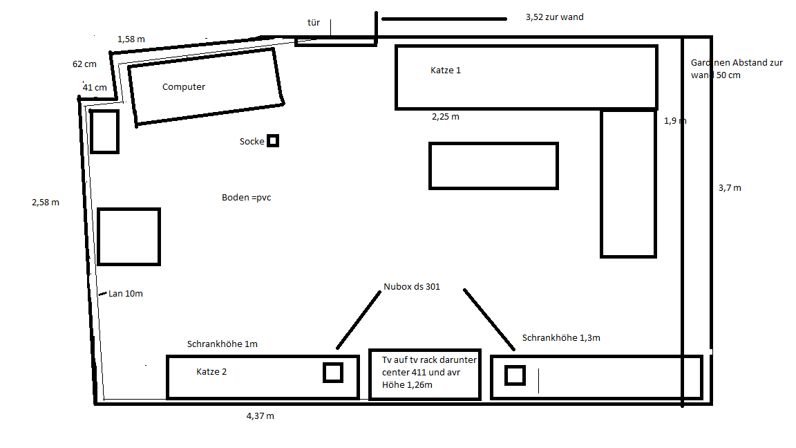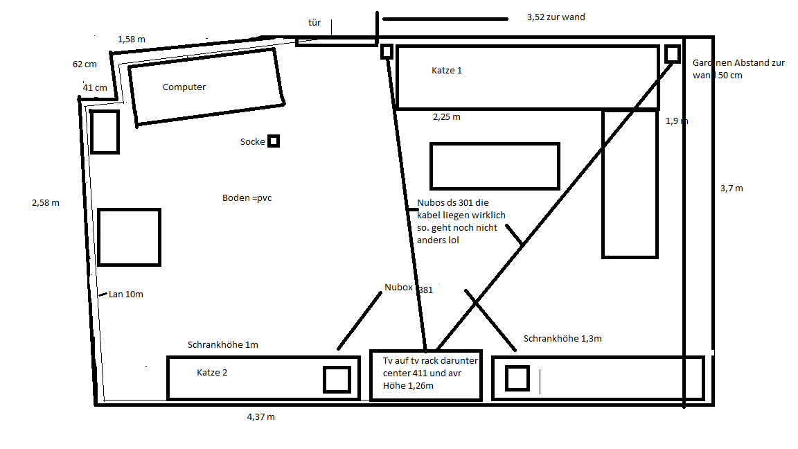 Ich meine z.b. steht mein center direkt über dem AVR. Dafür jetzt auch nen 10m kabel zu nehmen wäre doch totaler Quatsch oder ? ich aktualisiere mal die Skizze.