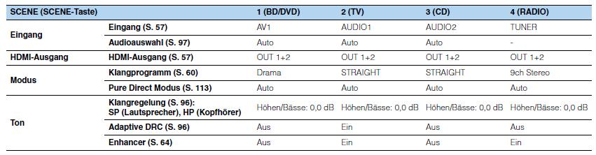 [Quelle: original Betriebsanleitung Yamaha RX-A3010 AVENTAGE] Wie ihr seht, speichert der Yamaha viel mehr als nur das Klangprogramm auf einer Scene ab