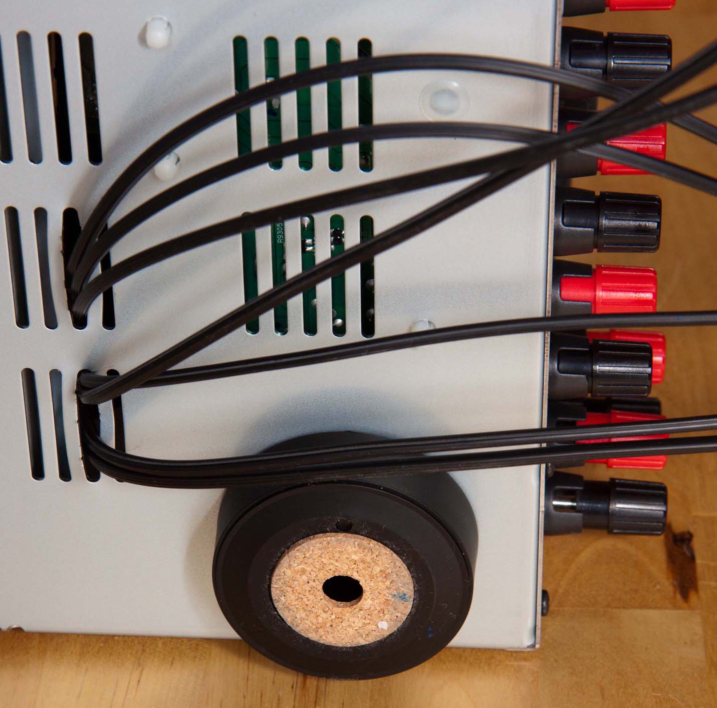 Da ich mir ein ein Adapterset mit Cinch-Buchsen gewünscht habe, erfolgt der Anschluss an den Pre-Outs mit Hilfe eines Doppel-Cinch-Steckers, bspw. CS-2 von Reichelt.