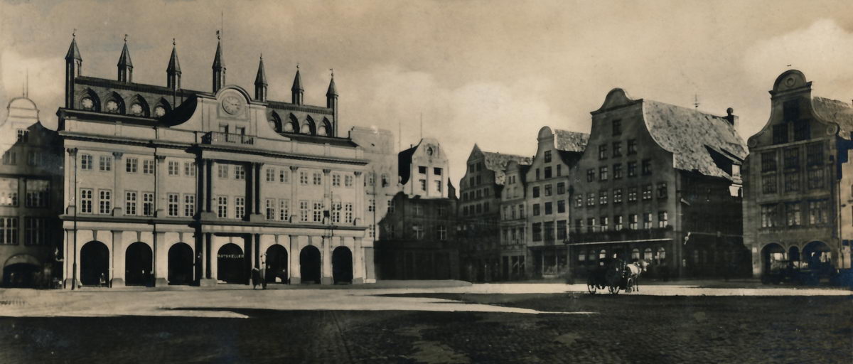 Wenn ich das richtig deute steht da über dem mittleren Torbogen des (Rat)hauses "Ratskeller" oder was in die Richtung..kommt das hin?