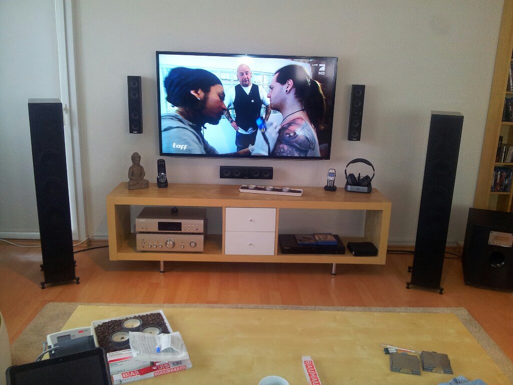 Ausserdem sitze ich nicht in der Hochtonachse, da mein neues Sofa tiefer ist wie früher üblich.
