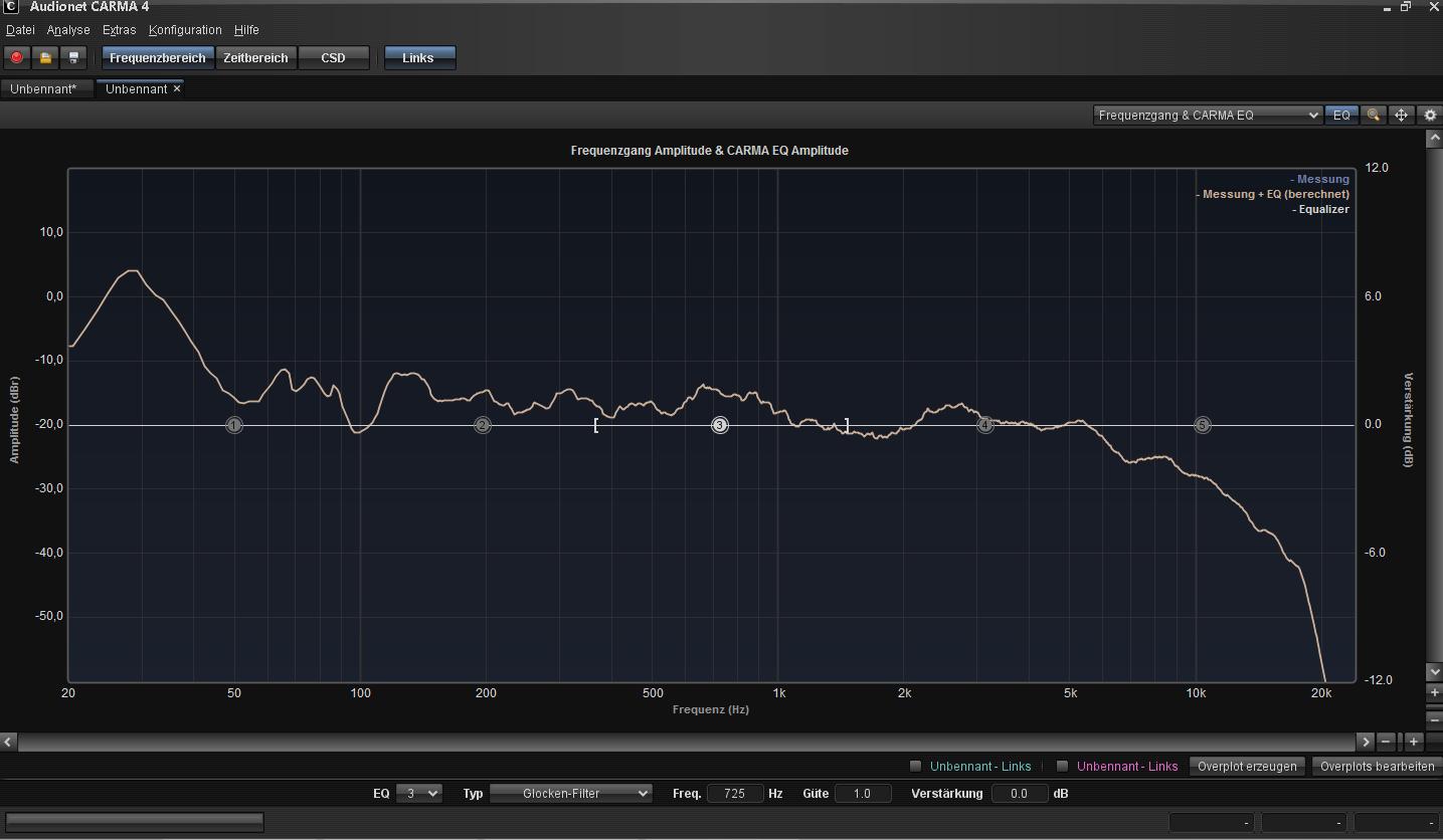 Zweitens (ich kann mich täuschen) sieht das eher danach aus, als wäre dein Sub ein wenig zu laut eingepegelt und du ne dicke 30Hz Mode hast.