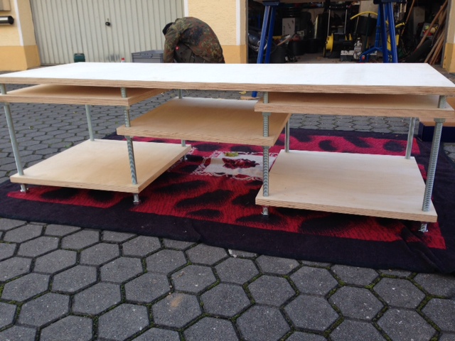 - Gesamtpreis der Konstruktion 140€. 70€ M20 Gewinde Stangen + Muttern und 70 € 24mm Multiplex Platten Obi (der Zuschnitt war kostenlos).