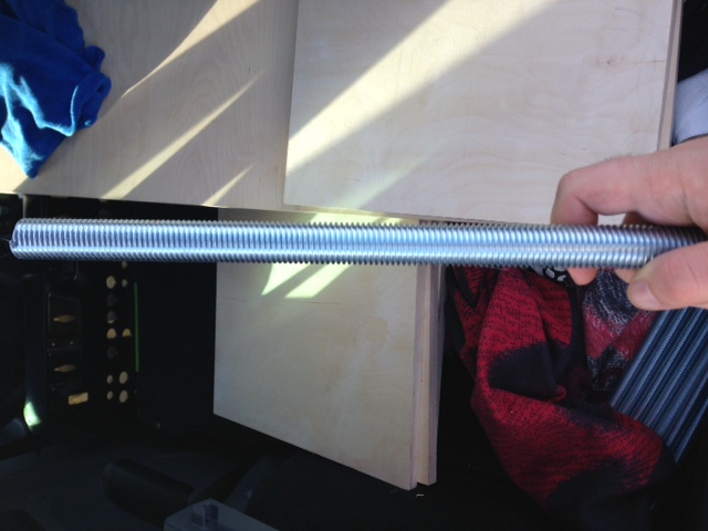 - GEwinde Stangen gabs nur im Meter -> mit der Eisensäge auf 45cm getrennt (wollte keine Flex benutzen, da es sich sonst blaugefärbt hätte).