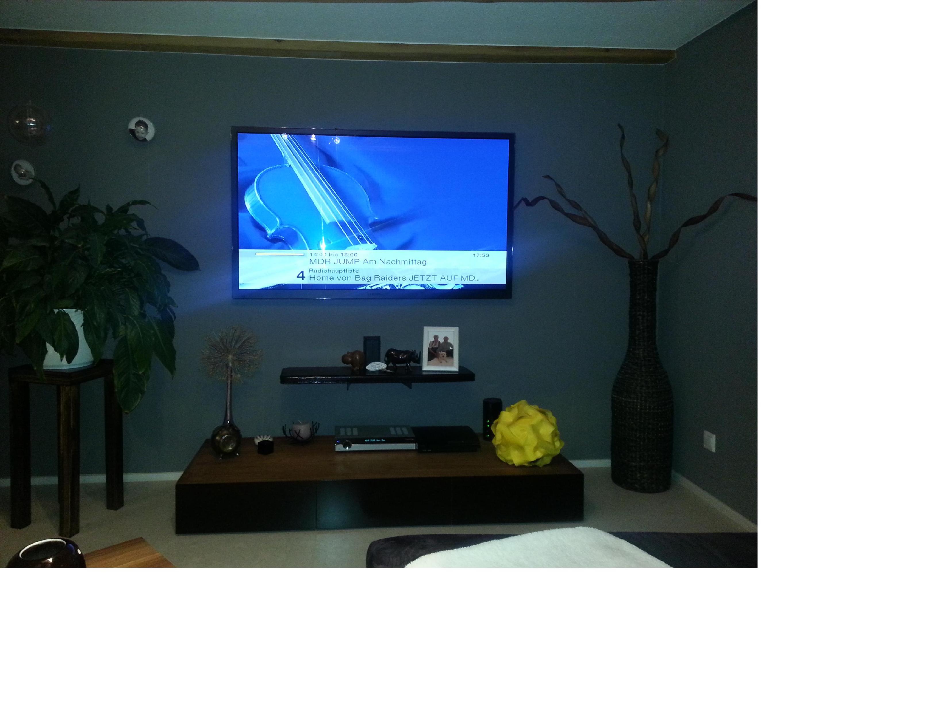 Der center kommt unter den TV auf die Halterung wo jetzt das schwarze Brett ist mit dem Foto drauf.