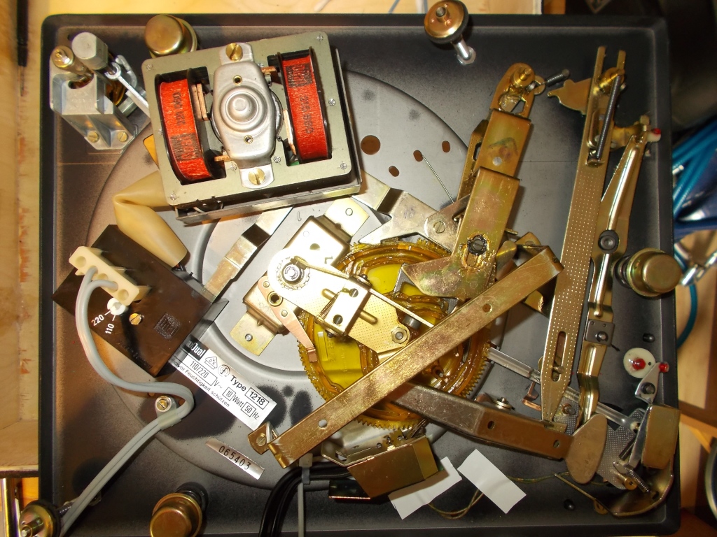 Manchmal kommt es anders als man denkt. Ich wollte heute kurz den 1218 fertig machen den mir Joe mitgebracht hat. Ein erstes Aufmachen mit Joe zeigte eine gebrochene Kurvenscheibe und ansonsten einen neu gefetteten Dreher. Also dachte ich Kurvenscheibe reparieren, Cinchkabel anlöten und gut ist. Scheisse wars! Erste Tests nach der Reparatur waren furchtbar, klapperig die ganze Geschichte, zu schnell die Kiste und irgendwie alles mistig. So schlecht soll der begehrte 1218 sein? Also habe ich mich zusammengerissen und die Kiste nochmal aufgemacht und so überholt als ob es die letzte Schranze aus irgendeinem Keller wäre. Vieles war falsch eingestellt, der Motor war nicht ordentlich gewartet, teilweise waren an entscheidenten Stellen Muttern nicht fest genug usw usw