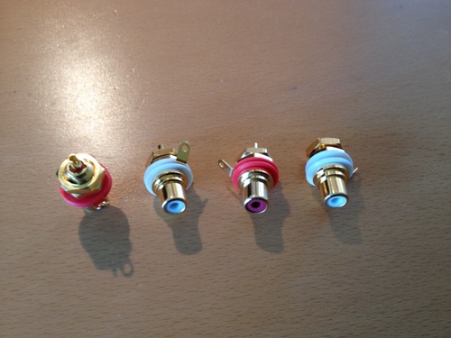 2. 4 Chinchbuchsen einbauen und interne Verdrahtung.