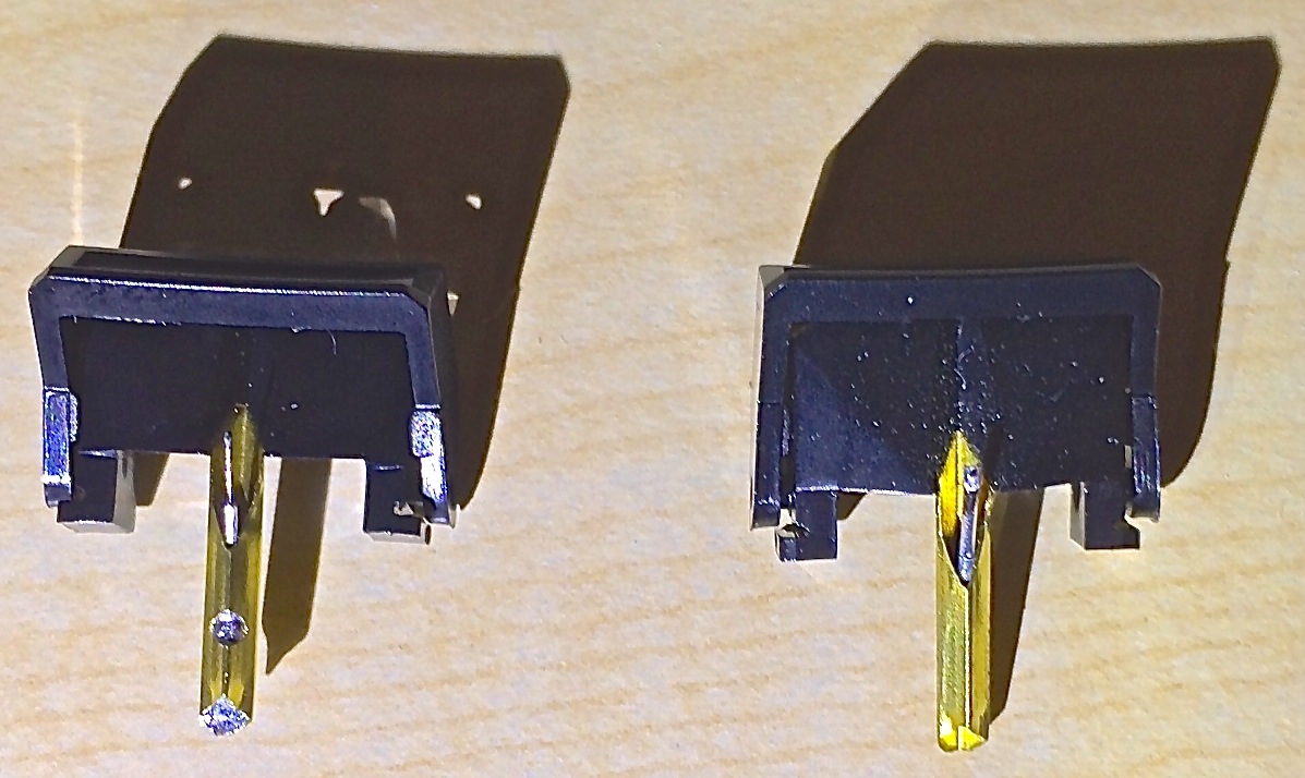 Die korrodierten Schalter haben´s getan und die (scheinbar) sauberen nun nicht mehr. Also habe ich mir das mal in der Vergrößerung angesehen und da kam dann zum Vorschein, dass die Schalter unten noch korrodiert waren, aber nun zusätzlich noch ganz feiner Reinigungsdreck auf den Kontaktflächen haftete.