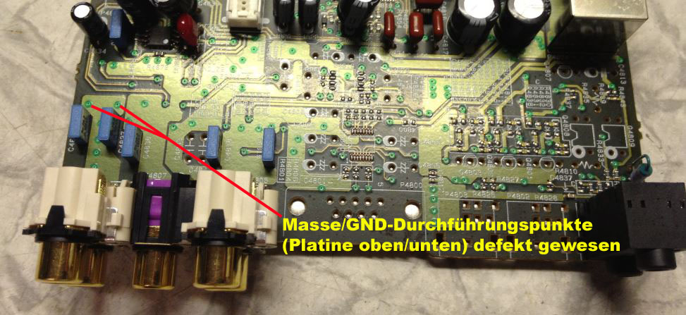...denn den L+R-PreOut-Cinchbuchsen fehlte die wichtige Masseverbindung