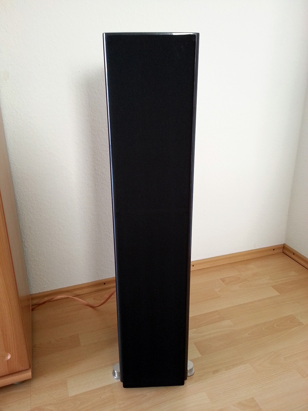 Nun hat mich dieses Thema allerdings nie ganz losgelassen. In den Abendstunden wo den nuVeros keine Kinderhände gefährlich werden konnten, habe ich öfters das Gitter abgenommen und später auf dem Weg ins Bett wieder drauf gemacht. An den Klang ohne Metallgitter hatte ich mich leider zu schnell gewöhnt, aber ohne Schutz geht’s nicht und auf das ständige hin und her hatte ich bald keine Lust mehr, also habe ich mir für 10 EUR Akustikstoff besorgt und über die nuVeros gehängt um zu testen ob´s was bringt.