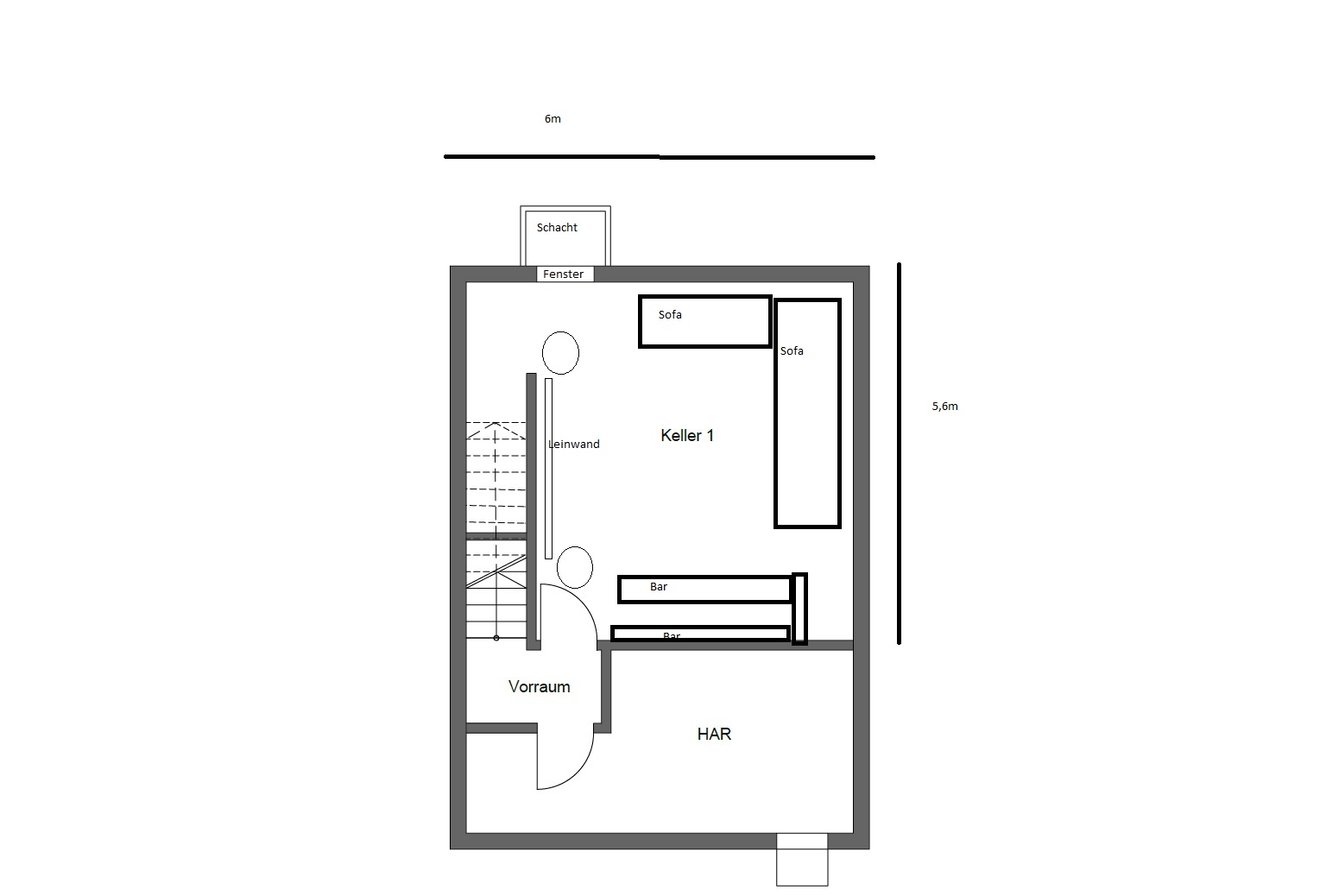 Die Idee ist es, einen Raum als Aufenthalts- Lounge-Raum zu schaffen, der aber auch eine Leinwand, Beamer und Mehrkanal-Anlage enthält und auch für das reine Musikhören genutzt werden kann/soll.