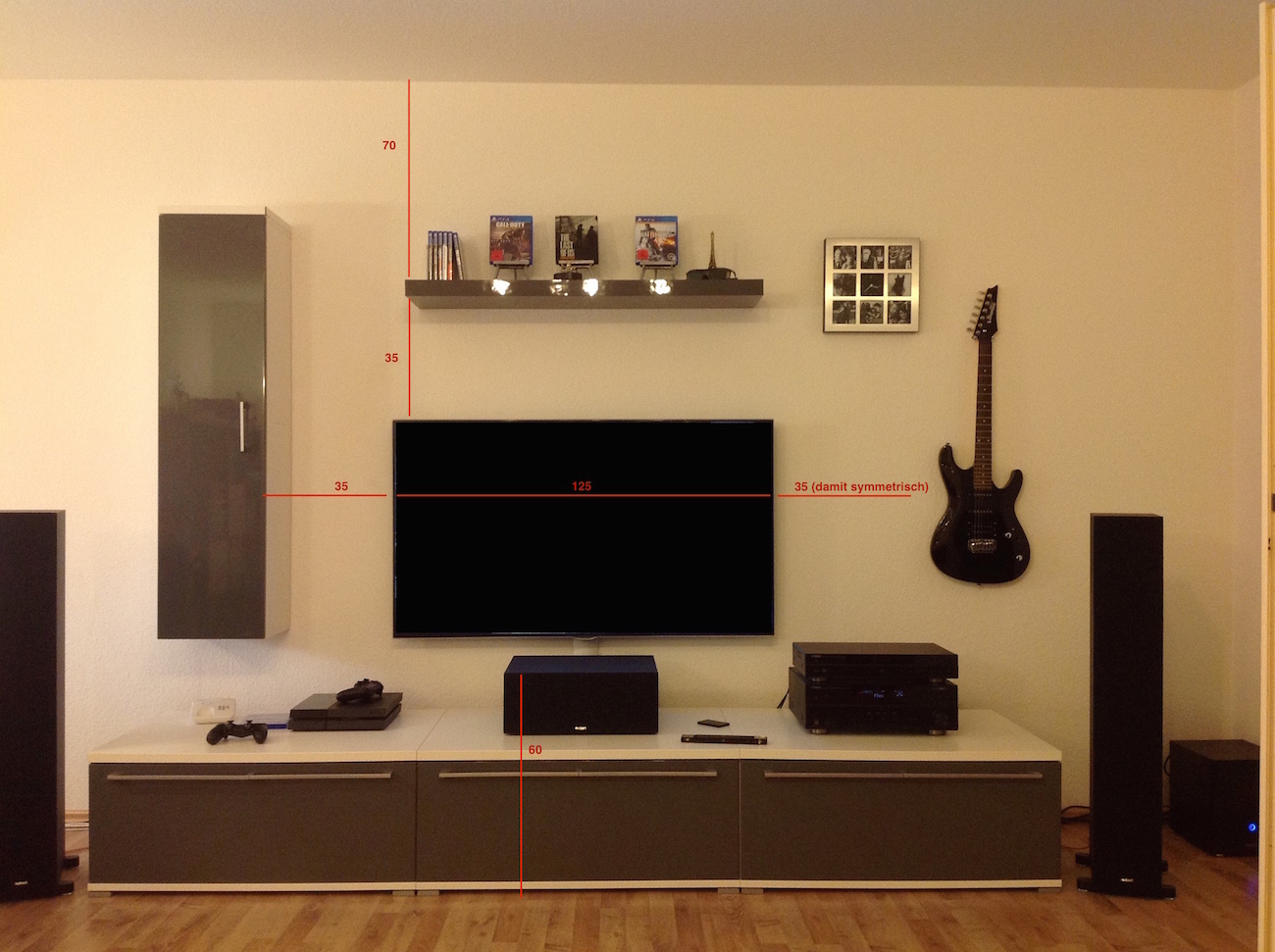 ps: 3m, weil ich davon ausging, dass deine wohnwand 3m breit ist, und du die lw schon so wählen musst, dass die ls nicht verdeckt sind...außer bei einer schalldurchlässigen (die ich nich empfehlen würde)