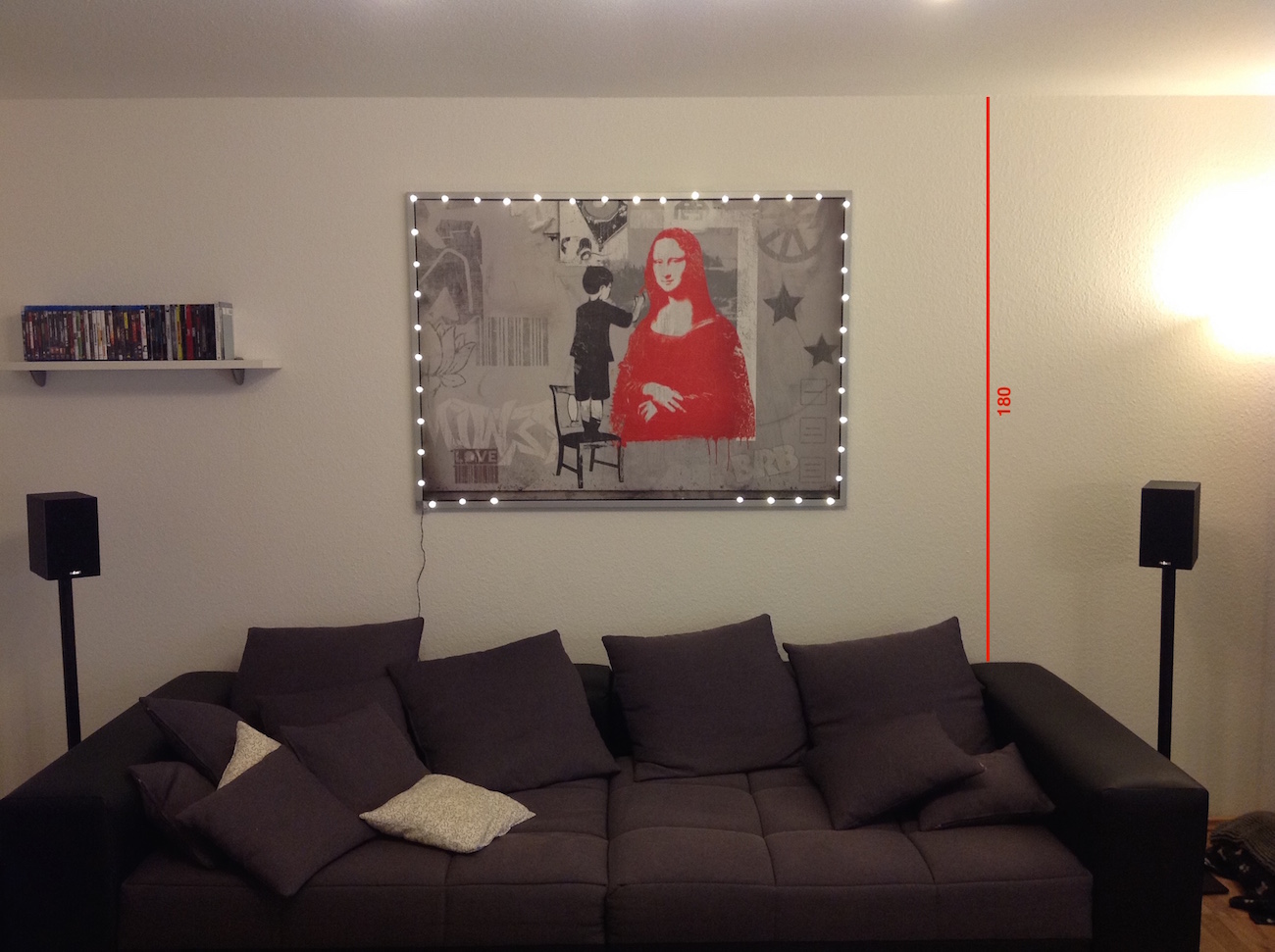 da du ja ohnehin nie film sehen willst und in den schrank/das regal musst, würde ich knallhart eine 3m breite lw abhängen...mitten im raum (also ka 50 cm von der rückwand entfernt) am liebsten ne 21:9
