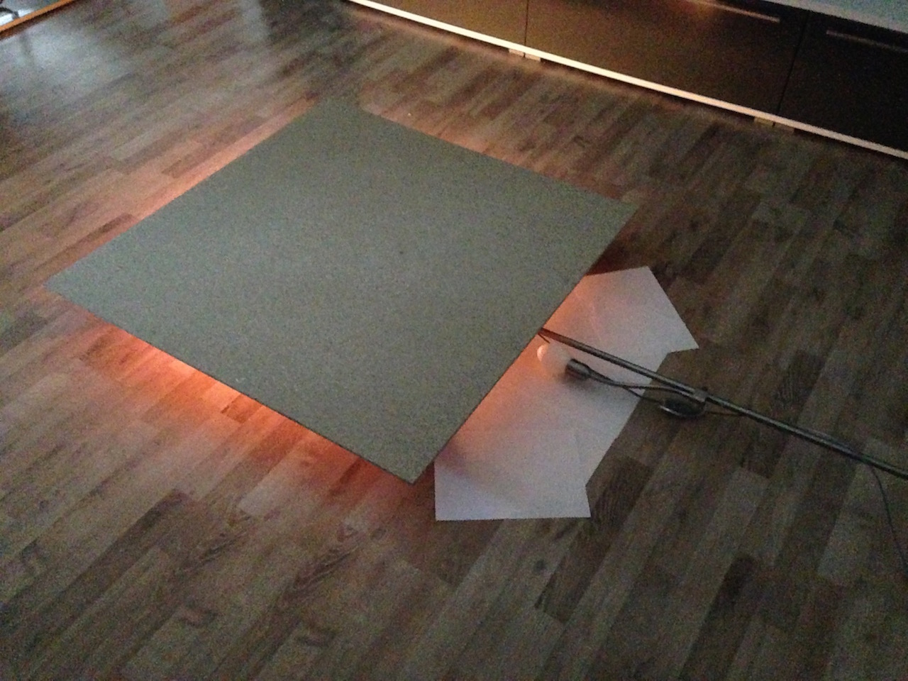 Die beiden Schaumstoffplatten auf der Spanplatte