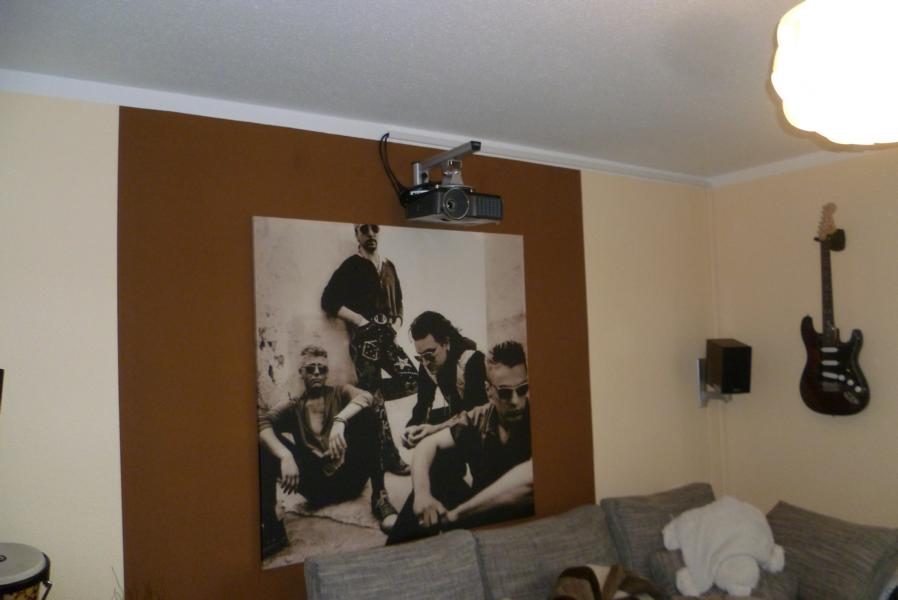 Das Bild meines jetzigen Beamers geht auf die Entfernung nicht größer, bitte nicht wundern. Bono macht bisher eine gute Figur auf der Leinwand, nur die Beulen?