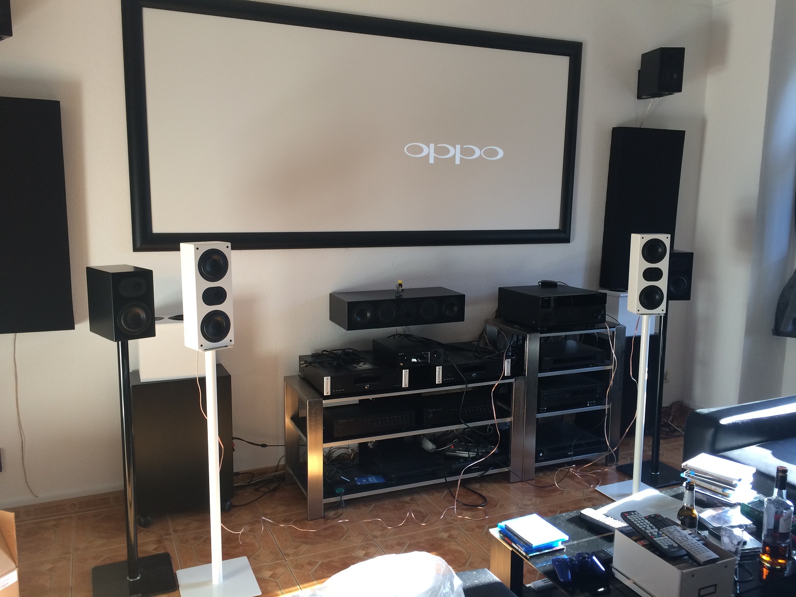 Zum Center: ab wann trennst du ihn denn? Nimmst du den Wahlschalter für Wandnähe? Optisch ist das schon schick so direkt unter der Leinwand.