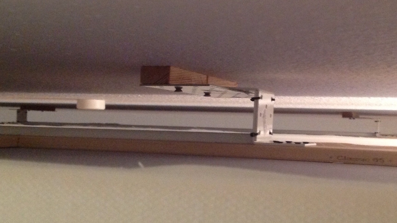 Auf das mittlere Zwischenstück, zwischen die Haltewinkel, hab ich noch je eine 150cm Regal-U-Schiene gespaxt.
