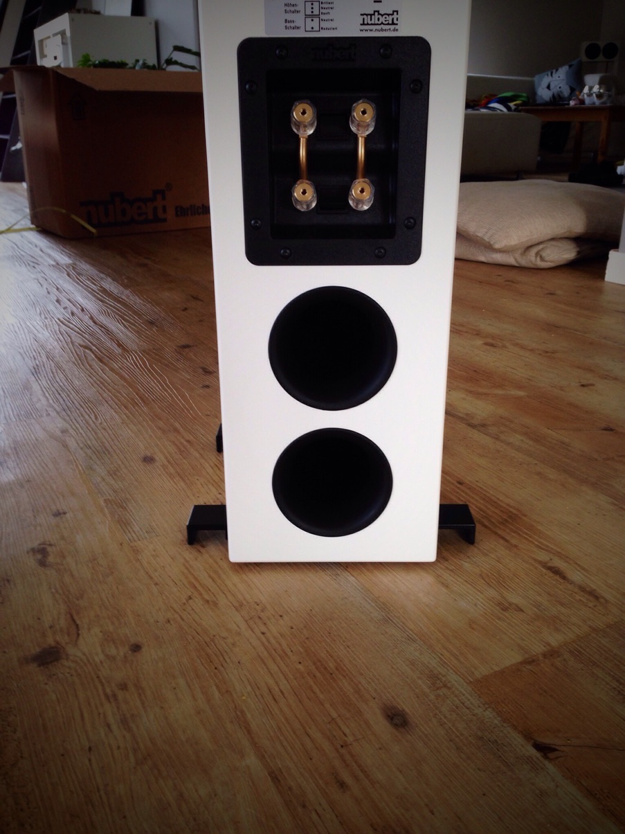 Schwarz-Matt ( gepulvert ) sollten sie werden. Ich finde diese Farbe findet sich an dem Lautsprecher wieder. Zu den Chassis, BR-Rohren u. Terminal. Ergibt eine klare Linie wie ich finde, Black & Withe.