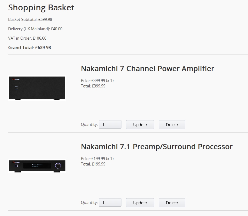 Gesamtkosten = £639.98 (aktuell ~895€) ...und das für eine 7ch-Vor-Endstufen-Kombi