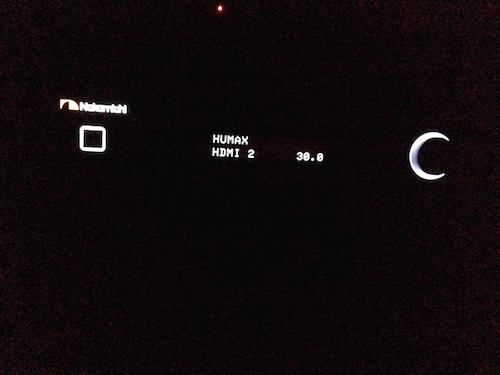 (Der rote Punkt ist vom Plasma, da auf Standby.)
