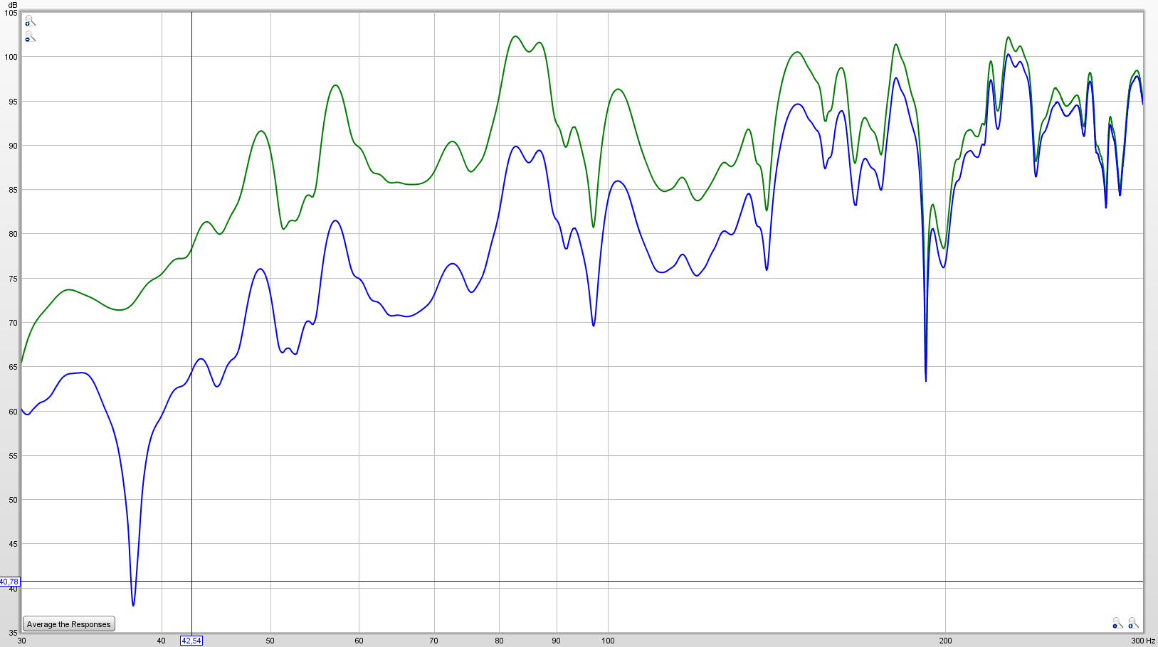 Der Denon senkt die Frequenzen unterhalb der Trennfrequenz nur mit einer ziemlich geringen Güte ab. Damit ich bei den Frontlautsprechern die Moden zwischen 50 und 60 Hz um 15 dB zu senken, muss ich die Trennfrequenz auf 200 Hz stellen.. Nachdem testen ohne Sub habe ich den wieder mitlaufen lassen und jetzt bekomme ich eine Kurve, die ich mir nicht erklären kann. Ich habe zwar bei 70 Hz einen extremen Pegeleinbruch, wenn ich nur den Sub laufen lasse, aber zusammen mit der Front müsste der Einbruch doch abgefangen werden? Ich würde mich über eine Erklärung freuen
