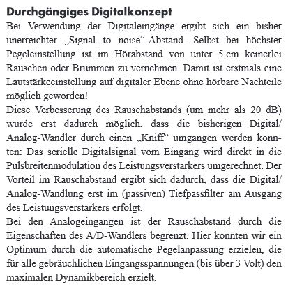 das wär jetzt eigentlich eine Frage an die NSF. Mich würde auch brennend interessieren, wie die Technik "von offizieller" Seite beschrieben wird...Brette hat geschrieben:So wie ich das aber verstanden habe handelt es sich hierbei nicht um einen "klassischen" Class-D Verstärker