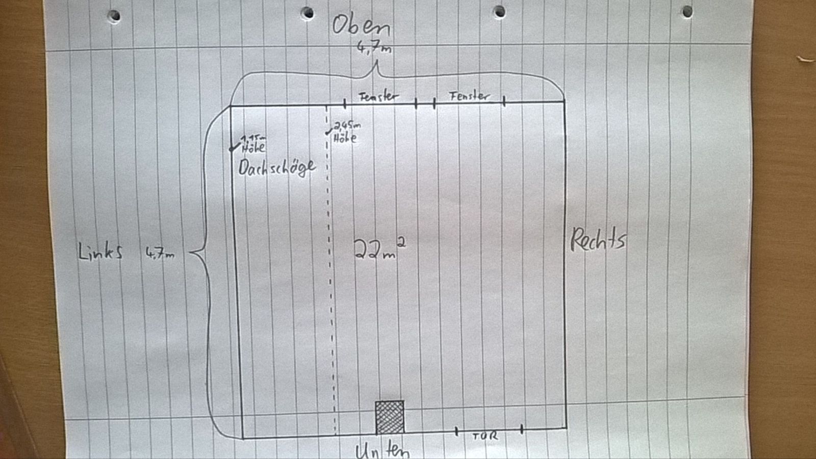 das wäre so in etwas 1/4 1/4 des raumes und der hörplatz auf 1/2 dazu die restlichen boxern auf einem imaginären kreis angeordnet