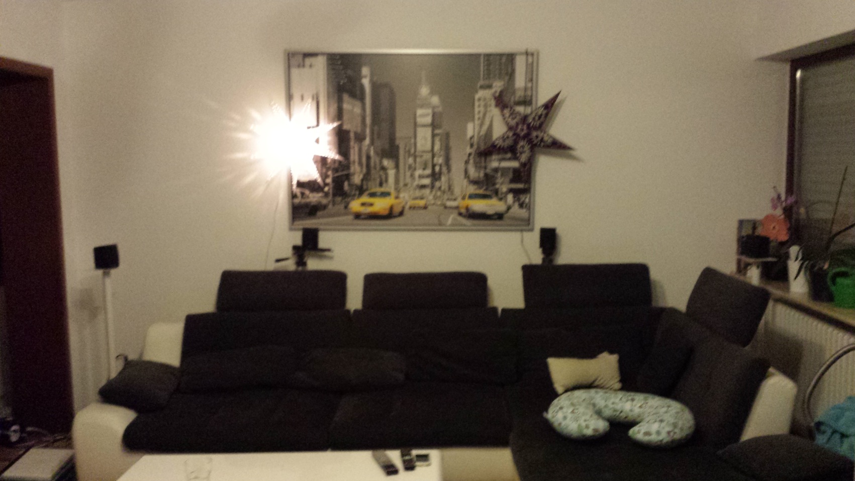 Nun, wir haben zusammen das Wohnzimmer eingerichtet und für die Möbel etc. ein Haufen Geld hingeblättert. Da es Aufgrund von Fenster, Türen und eine Essniesche keine besseren Stellmöglichkeiten gibt. Ist die Wahl so gefallen. Nun kann man erst was ändern, wenn die Möbel ausgetauscht werden (sind aber erst 1 Jahr alt). Da wir auch 3 Kinder haben, braucth man halt auch Platz - Stauraum. Also mit der Einrichtung geh ich hier mit dem WAF gleich