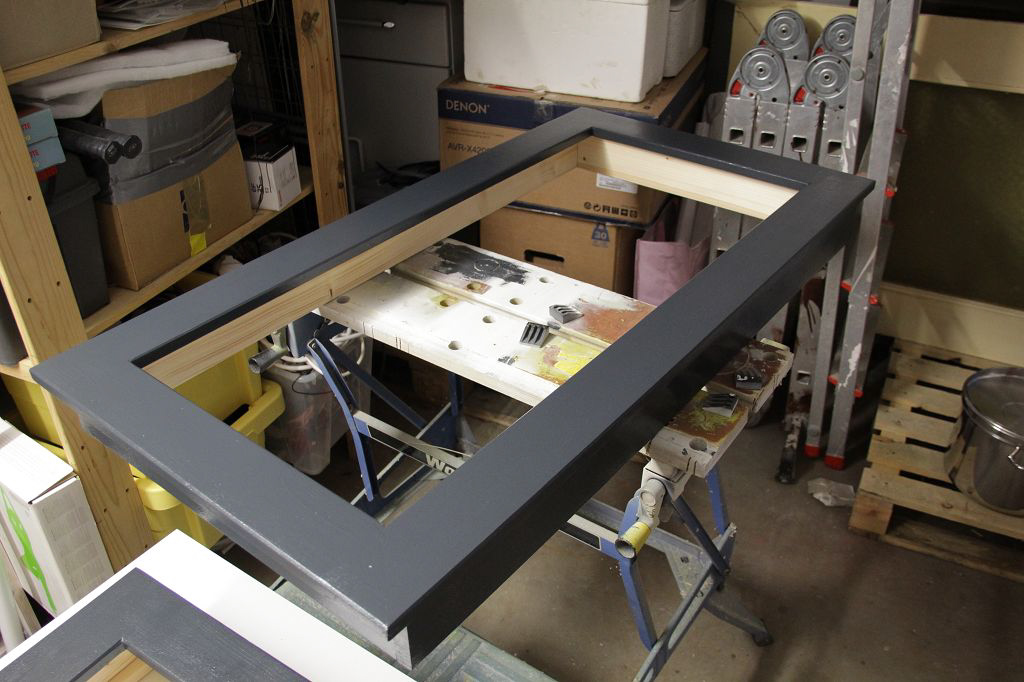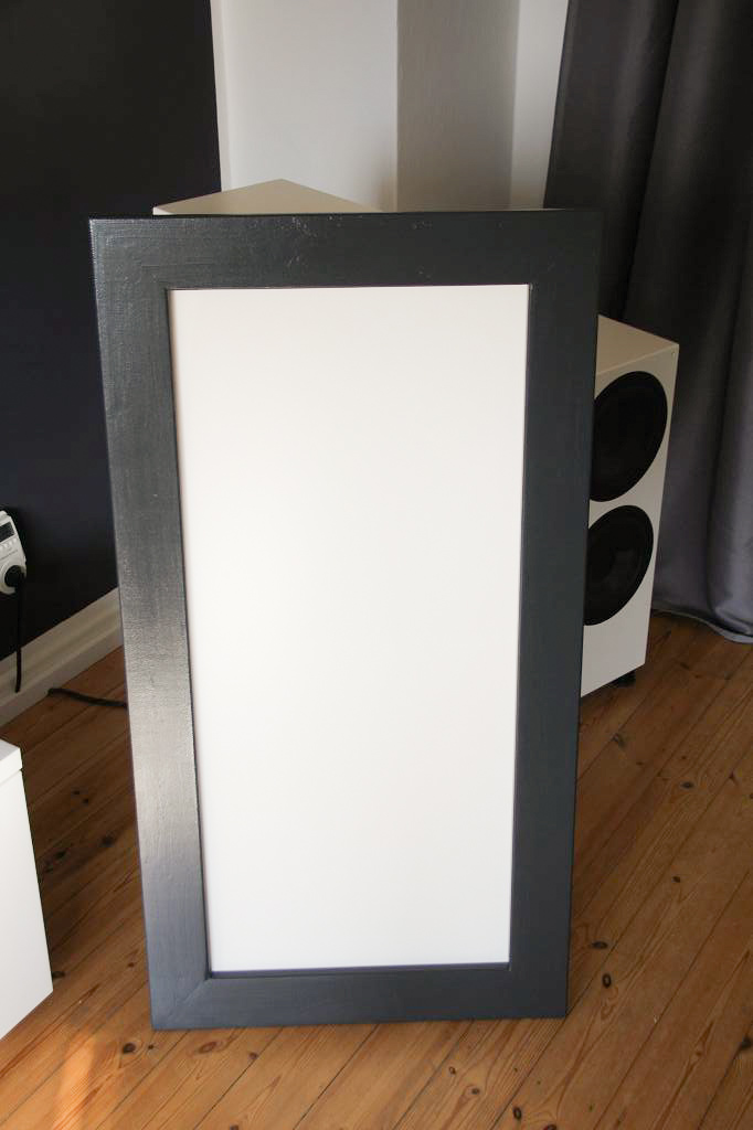 Und hier die gebauten Rahmen: Hier mit Stoff bespannt: Hier fertig: Und hier an der Wand: Wie ich finde, ein guter Schritt nach vorne. Nun folgt ein Deckensegel mit integrierten Atmos LS. Auch davon werrde ich berichten.