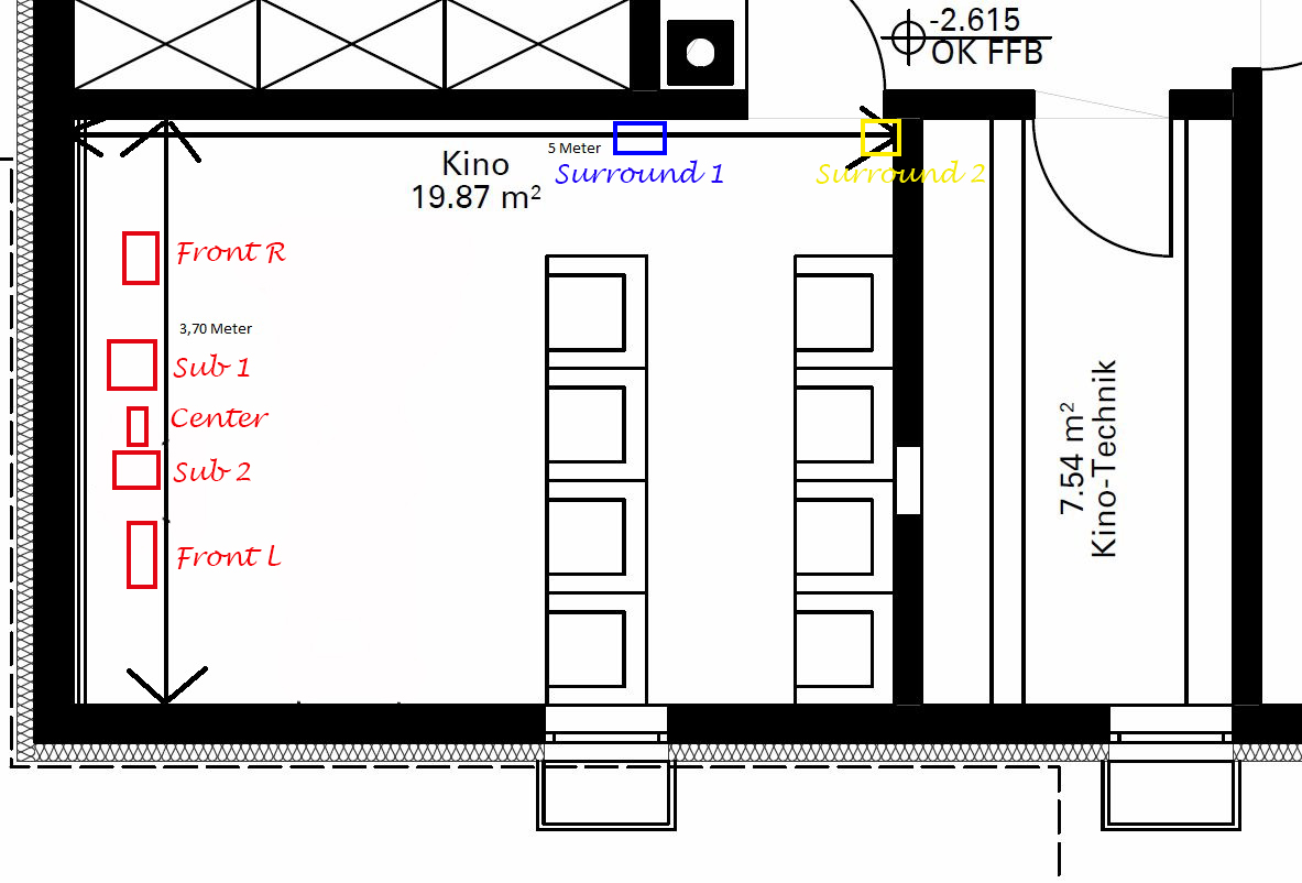 ich bin jetzt gerade soweit fertig mit meiner Einrichtung fürs Kino und da ist mir eingefallen das die Anordnung der LS wohl nicht so richtig ist....