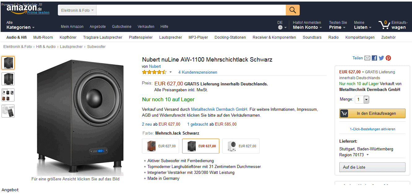 In jüngster Zeit tauchen bei Amazon Angebote für Nubert-Boxen auf, die deutlich unter unseren Preisen angeboten werden.